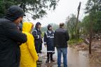 O roteiro seguiu com paradas em trechos do Arroio Esteio, onde estão previstas diferentes projetos, passou pela junção do Esteio com o Arroio Sapucaia, onde será feito uma elevação da cota de proteção do Arroio Sapucaia com cerca de 750 metros de extensão, e encerrou na Rua do Lírios, via que liga as ruas Rio Grande e Bento Gonçalves, onde será construída uma bacia de reservação para as águas da chuva em toda a região com cerca de 100 mil metros quadrados. Essa será, aliás, a primeira obra do Esteio Resiliente. “O projeto já foi finalizado e está passando por ajustes. Em breve vamos lançar a licitação para começar essa obra, que tem como objetivo evitar os alagamentos nesta região”, explicou o prefeito.