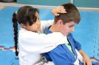 Alunos da Escola Municipal de Educação Básica (Emeb) Eva Karnal, no Bairro Liberdade, aplicaram mata-leões, guilhotinas e “arm-locks” na manhã desta quarta-feira (26).