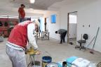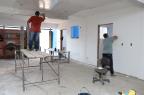 Na manhã desta quinta-feira (11), operários da Sommer’s Construtora trabalharam na colocação de grades, cerâmicas e massa corrida nas paredes internas do novo “posto de saúde”.