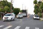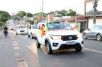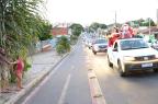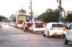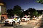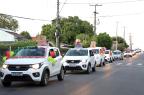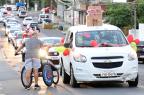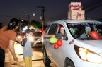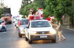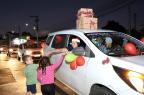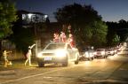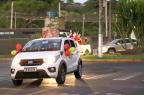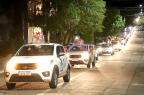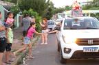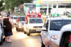 Servidores da Prefeitura e voluntários acompanharam com carros enfeitados durante o percurso, que foi da Rua Alegrete até o Ginásio Municipal Edgar Piccioni, na Rua 24 de Agosto.