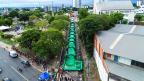Com 75 metros de cumprimento por quatro metros de largura, um tobogã inflável, instalado na descida da Rua Coração de Maria em direção à Rua Padre Felipe, no Centro, foi a principal atração da última edição da Colônia de Férias de 2026, atividade promovida pela Secretaria Municipal de Cultura, Esporte e Lazer (SMCEL) na tarde do último sábado (7) na Praça Coração de Maria.