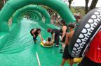 A cada descida, a reação da criançada – e também de alguns adultos que aproveitaram a brincadeira – era parecida. “Que irado!”, “Que massa!”, “Muito legal!”, era o que mais se ouvia no final do percurso. Também comum, era o participante entrar novamente no final da fila para pegar as boias e descer novamente pela pista molhada e ensaboada.