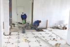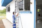 Na tarde da quarta-feira (18), trabalhadores da Harmonia Construções Ltda iniciaram a pintura da unidade e avançaram na finalização do piso principal.