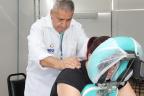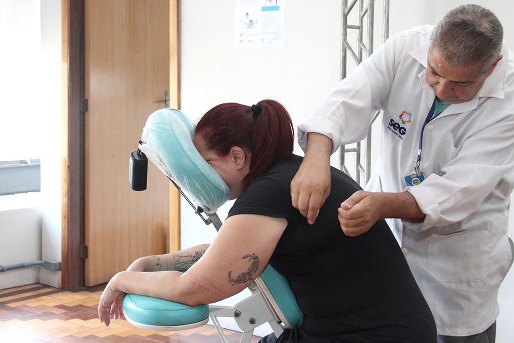 Durante toda manhã, Paulo aplicou a técnica que ajuda a aliviar o estresse e tensões musculares em áreas mais afetadas pela rotina de trabalho, como ombros, braços e coluna.