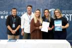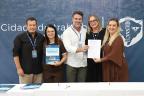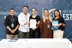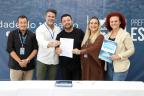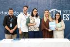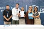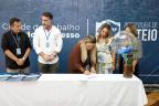Diretores e vice-diretores das 32 escolas municipais assinaram, no início da tarde desta sexta-feira (10), em ato realizado no Salão Nobre da Prefeitura, o Acordo de Resultados das Escolas de Esteio, um conjunto de metas acordadas com a Secretaria Municipal de Educação (SME) que cada instituição tem para cumprir ao longo do ano. O documento foi firmado, também, pelo prefeito Felipe Costella, pelo vice-prefeito Rafael Figliero e pela titular da SME, Rosemary Kennedy.