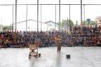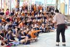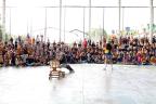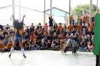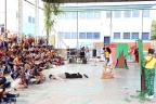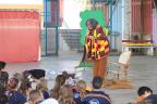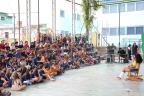 Com a quadra cheia e muitas risadas ecoando pelo espaço, alunos da Escola Municipal de Educação Básica (Emeb) Dulce Moraes, no Bairro Liberdade, tiveram a manhã desta sexta-feira (17) bem animada com o grupo de teatro Avó Zulmira.